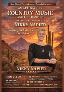 Join Dale Abnett as he hosts an Afternoon Of Country Music and Line Dancing featuring Nikky Napier